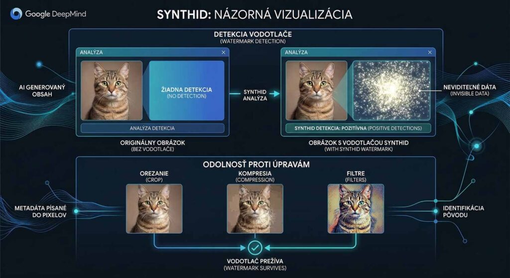 Možno si myslíte, že tú malú hviezdičku v rohu obrázka vygenerovaného umelou inteligenciou stačí odstrihnúť a „problém“ s označením umelej inteligencie zmizne. Pravda je však oveľa hlbšia. Technológia ako SynthID vkladá neviditeľný digitálny podpis priamo do samotnej štruktúry pixelov, zvukových vĺn či video-snímok. Tento podpis je vpletený do dát tak tesne, že prežije orezanie, zmenu farieb, pridanie šumu aj agresívnu kompresiu. Pre ľudské oko je tento obraz čistý a dokonalý, no pre iný algoritmus svieti ako jasný výstražný maják.
